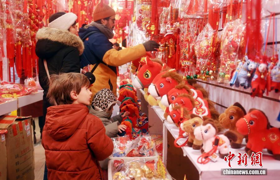 2026年2月11日,上海,位于豫园老城厢的旅游商品市场吸引外国游客,家长带孩子乐购春节年货。中新社发 陈玉宇 摄