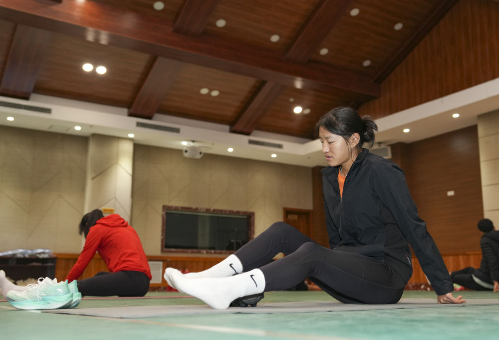 冬奥会前,次旦玉珍在一次训练后拉伸放松(2025年12月15日摄)。新华社记者 胡虎虎 摄