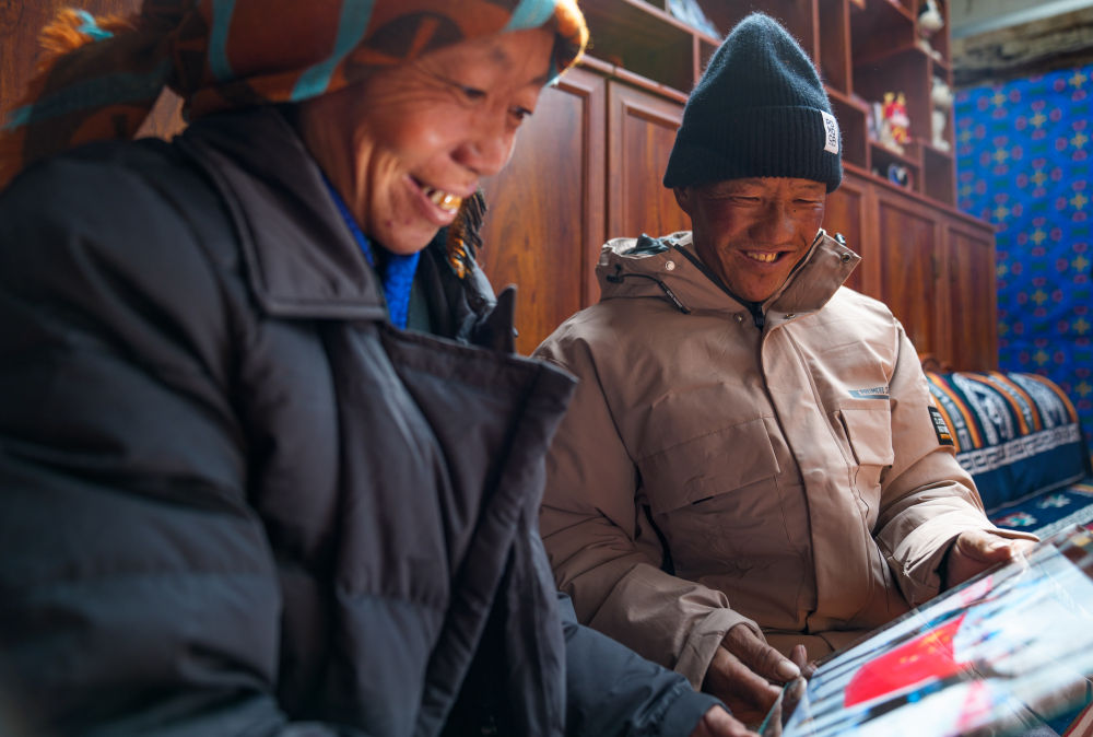 次旦玉珍的父母在家中翻看女儿参赛的照片(2026年2月7日摄)。新华社记者 丁增尼达 摄
