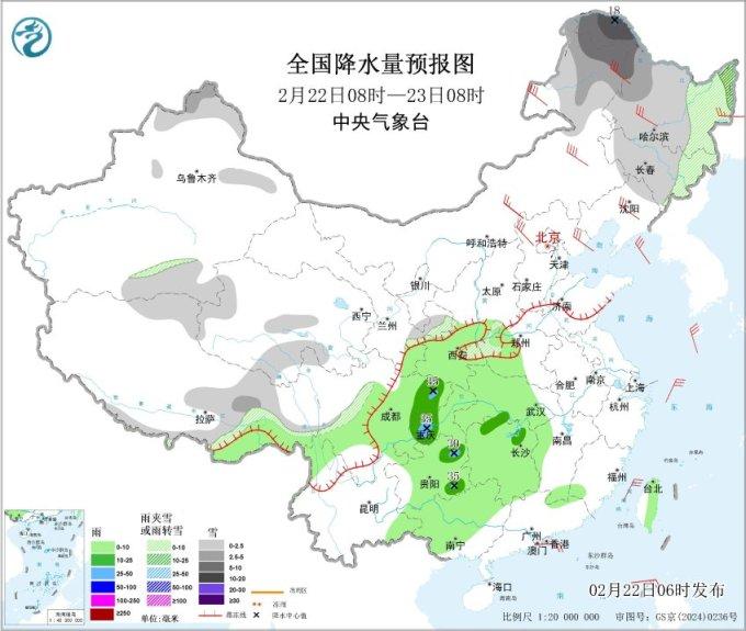 另外,今明两天,南方地区将迎来一次大范围降雨天气过程,江南中西部、贵州东部等地部分地区有大到暴雨,局地并伴有雷暴大风、冰雹和短时强降水等强对流天气。