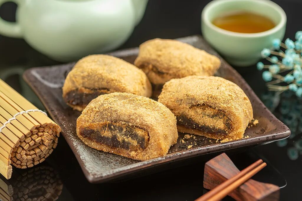 糯米面、黄豆粉、红豆沙