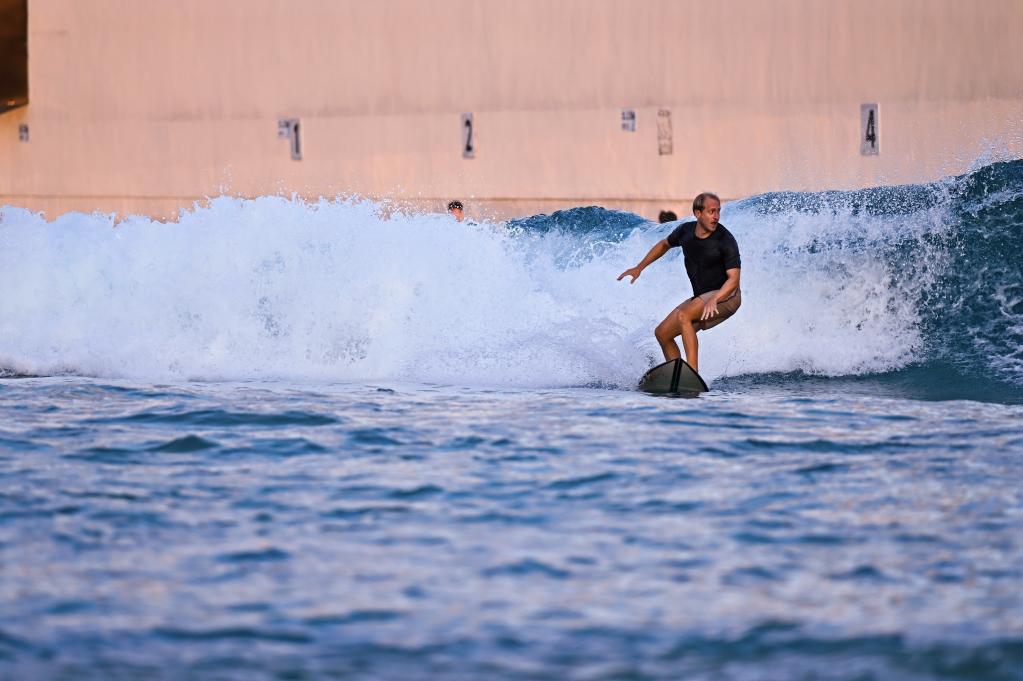 “人工造浪池的浪更稳定,对新手更友好也更安全。”田田笑着说:“这是我第五次冲浪,刚开始追求能站起来,现在追求冲得更远、更久。”