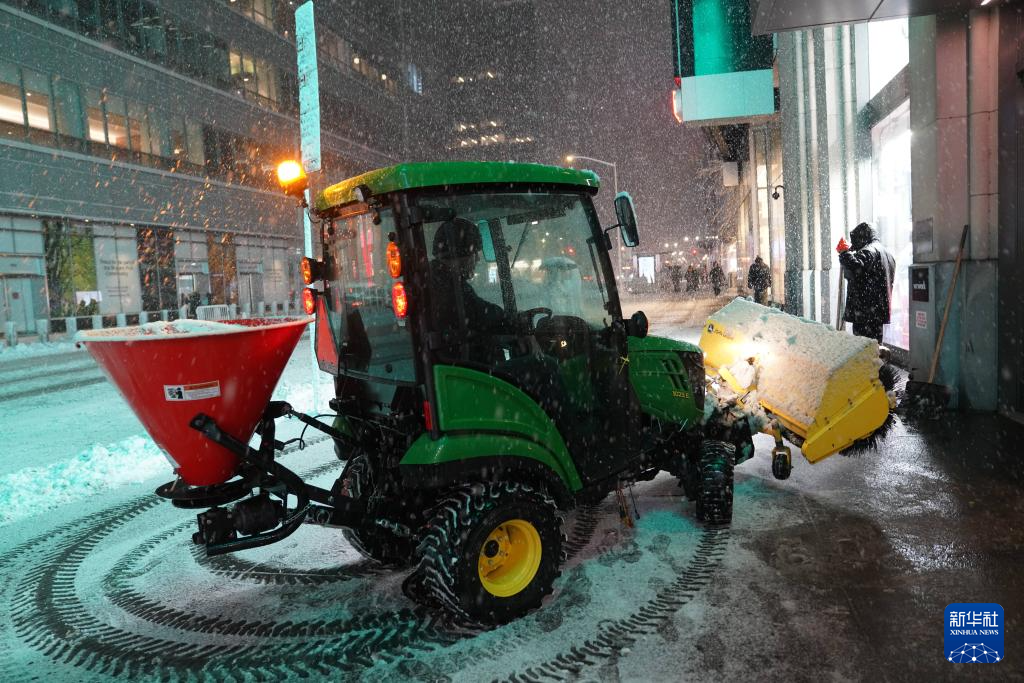 2月22日,在美国纽约,一辆铲雪车清理人行道积雪。新华社记者 张凤国 摄
