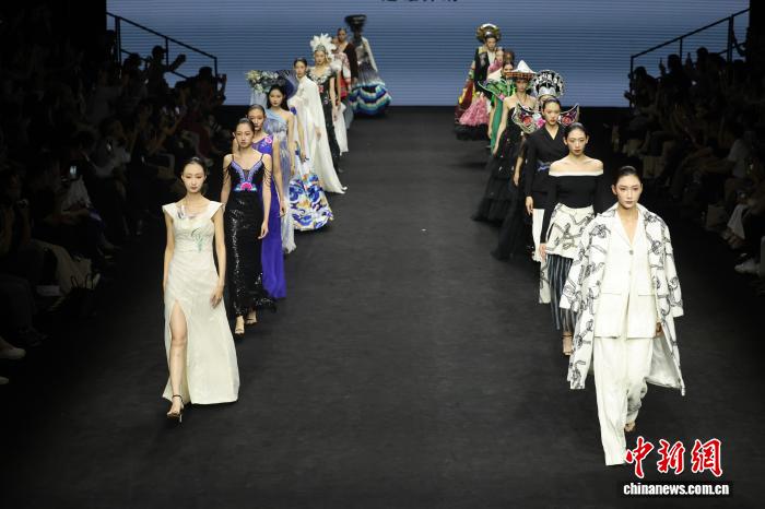 2025年9月8日,在北京举行的中国国际时装周(秋季)上,云南楚雄彝绣服饰亮相。 中新社记者 蒋启明 摄