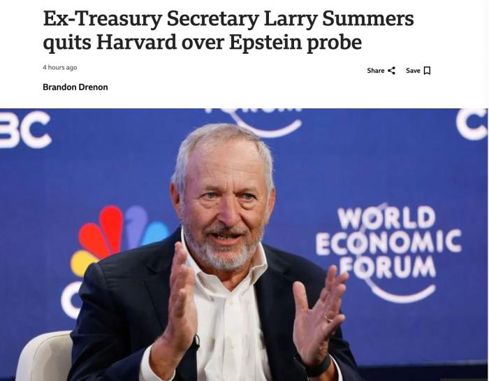 据报道,哈佛大学在25日的一份声明中表示,萨默斯的离职“与哈佛大学正在对爱泼斯坦案相关文件进行的审查有关”。