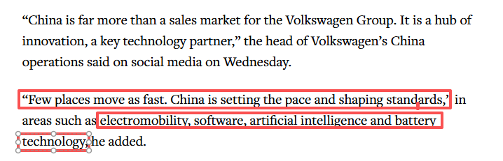 大众汽车集团负责人表示,中国对大众汽车集团而言远不止是一个销售市场。它是一个创新中心,一个重要的技术合作伙伴。“很少有地方在电动汽车、软件、人工智能和电池技术等领域发展如此迅速——中国正在引领潮流并塑造标准。”