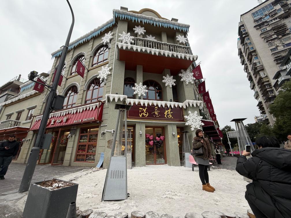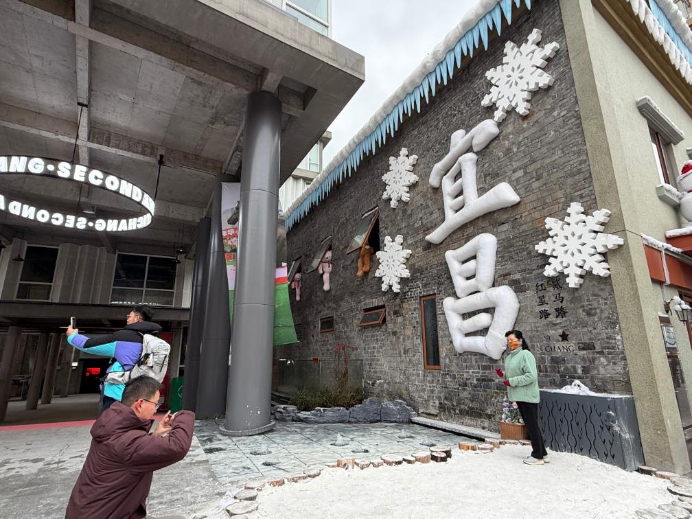 2月16日,游客在湖北宜昌红星路—二马路历史文化街区拍照。新华社记者陆睿 摄
