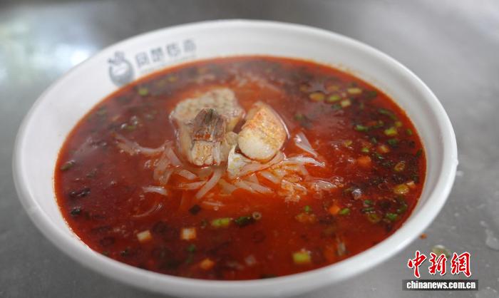 2月12日,湖南郴州栖凤渡镇瓦灶村栖凤渡鱼粉传承基地,一碗刚出锅的栖凤渡鱼粉。李盈 摄