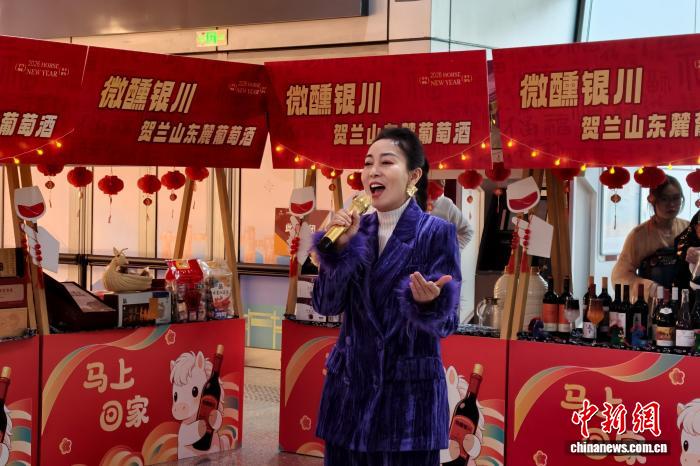 贺兰山东麓葡萄酒集市走进银川机场。 赵惠 摄