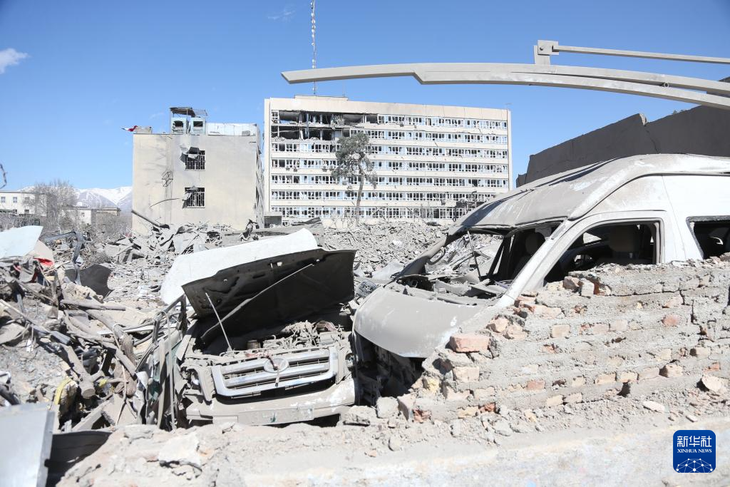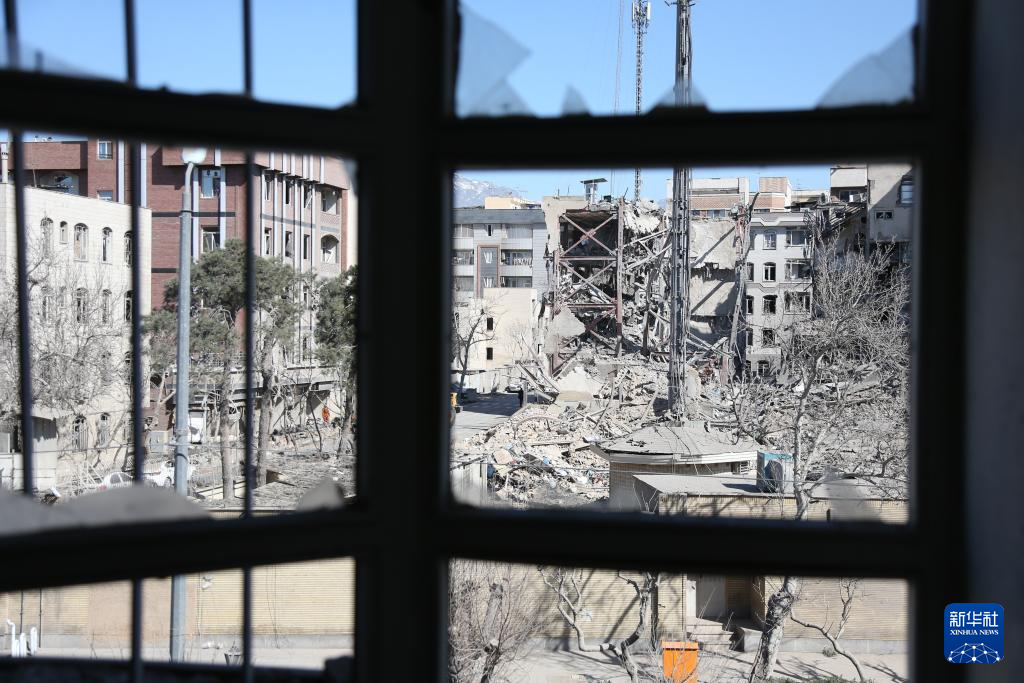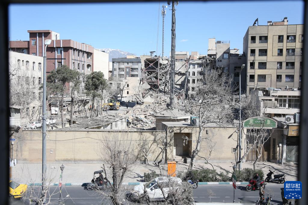这是3月3日在伊朗德黑兰拍摄的一处在袭击中受损的建筑。