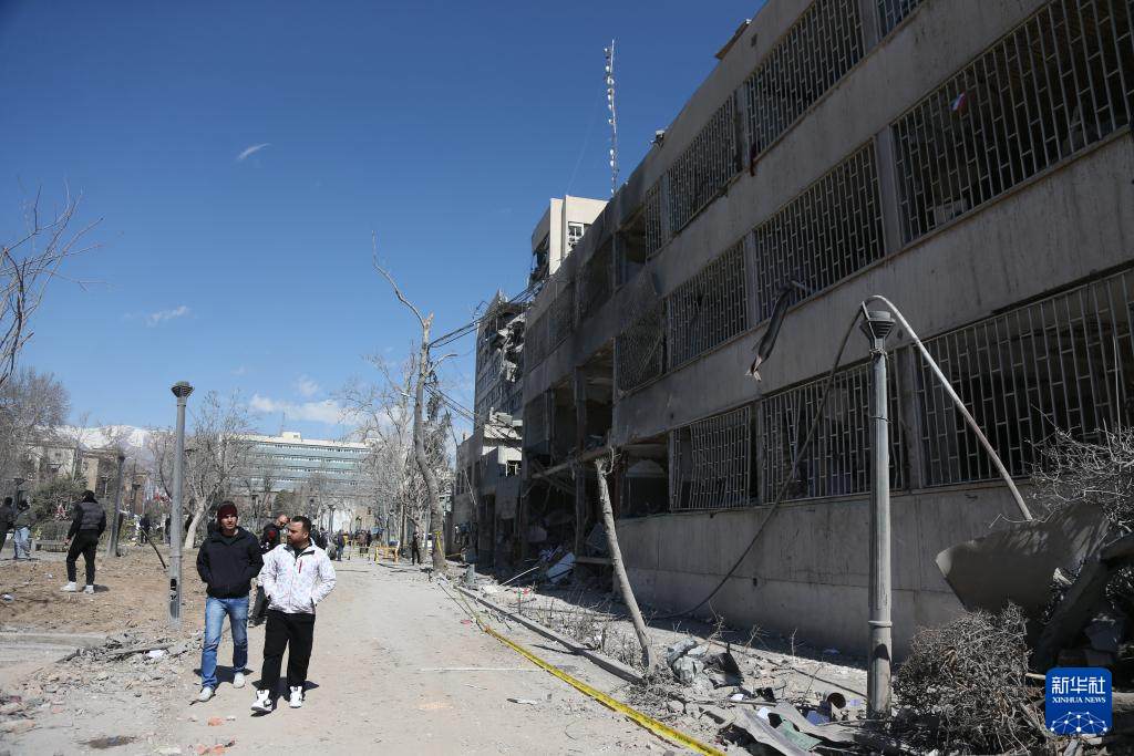 3月3日,人们走过伊朗德黑兰一处在袭击中受损的建筑。