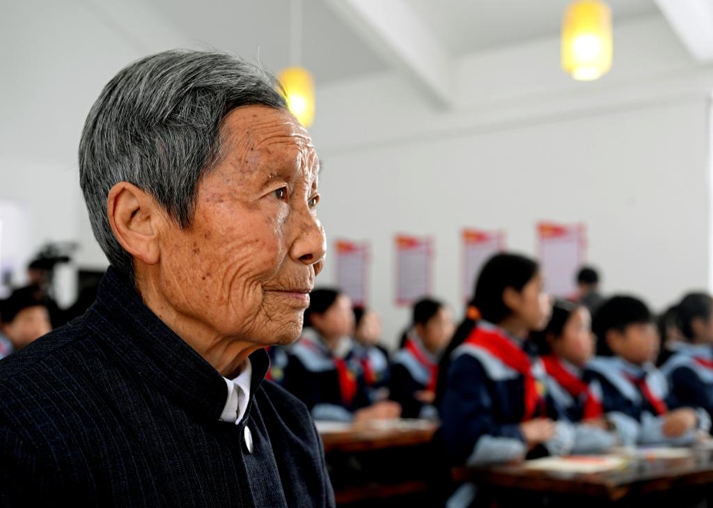 “保护红军就是保护革命的希望、保护我们自己的力量——这是父辈留给我们最宝贵的精神财富。”张爱华深情讲述着鄂豫皖革命根据地鱼水情深的故事,也分享了一辈子守护“红军洞”的初心。孩子们仰起头,坐得笔直端正,目不转睛地看着张爱华,时不时写下笔记。