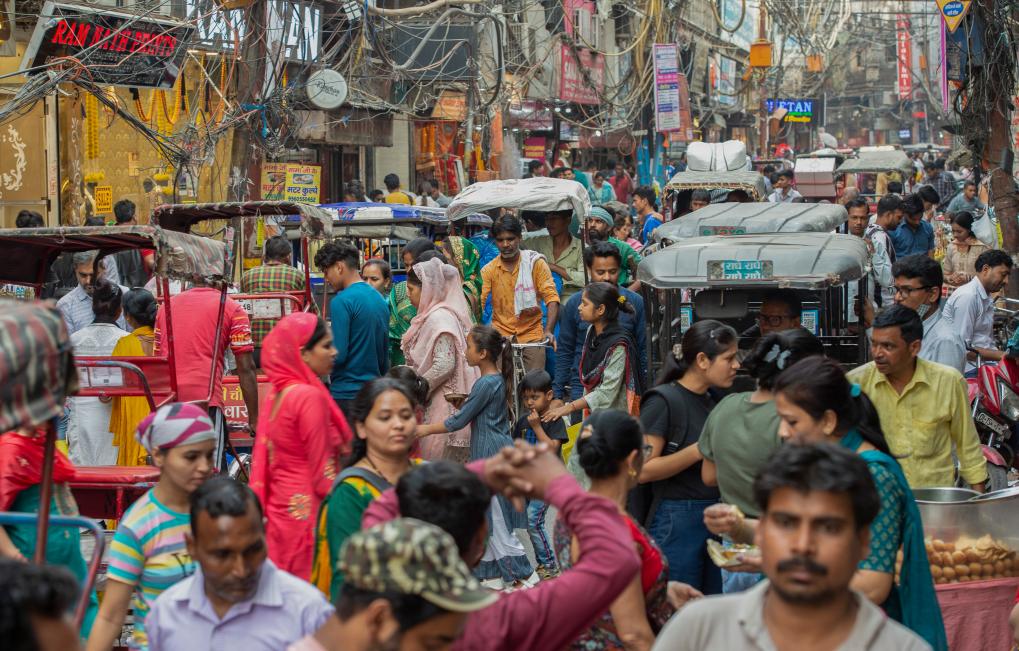 2023年4月26日,人们聚集在印度新德里的一处市场。新华社发(贾韦德·达尔摄)