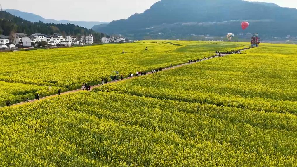 今年,当地推出热气球低空观光、主题小火车、体育赛事等体验项目,推动自然景观、文化资源与旅游体验深度融合,让传统赏花游“玩”出新花样。
