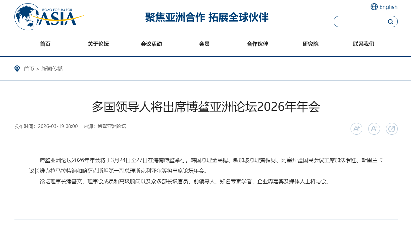 多国领导人将出席博鳌亚洲论坛2026年年会