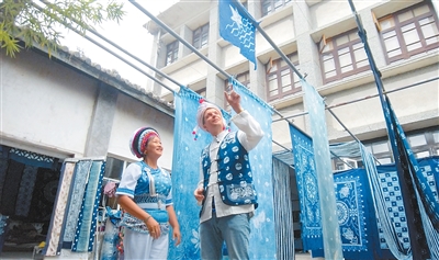 英国籍视频博主斯图尔特·维金在云南大理体验白族扎染技艺。吴桐 摄