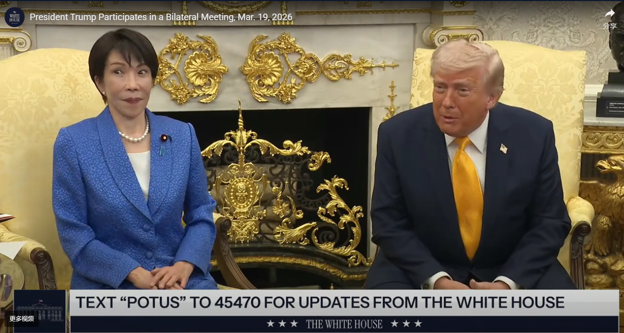 当地时间3月19日,美国总统特朗普与正在美国访问的日本首相高市早苗在白宫共同会见记者。图为白宫网站截图