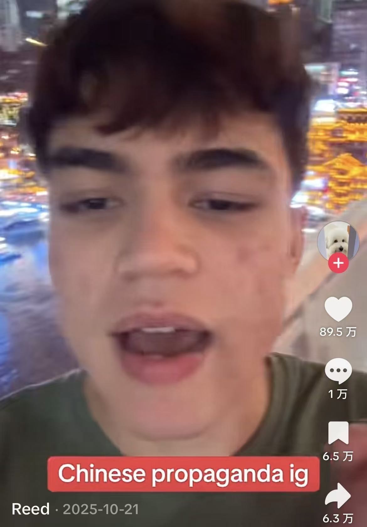 文章介绍说,里德·亚当斯13岁时就开始对中国产生兴趣。2025年,他打工攒够了钱,终于亲自来到中国。他在社交平台上发布视频称:“西方媒体只会告诉你,你看到的关于中国的一切都是宣传。这是因为他们不愿承认我们已经衰落到什么程度了。”
