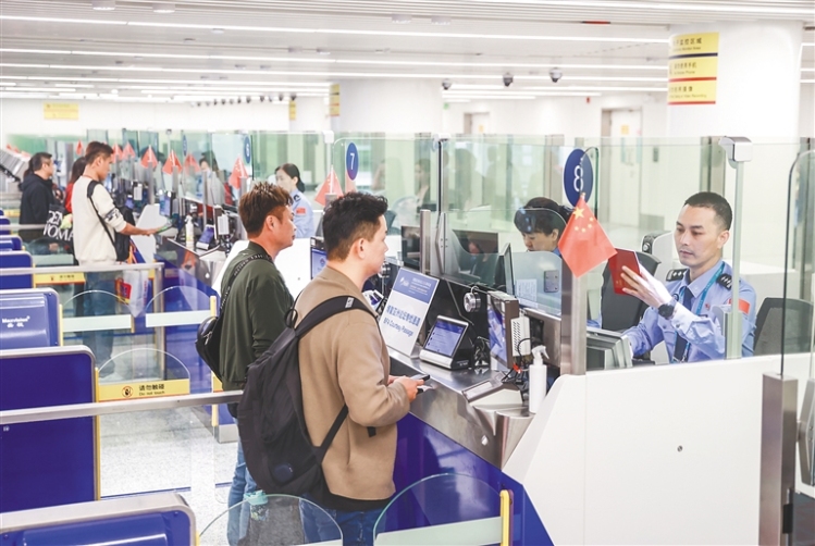 “我们抽调业务骨干组成查验组,加强外事礼仪培训,多次开展合成演练,确保各环节衔接更顺畅、口岸通关更便利。”美兰出入境边防检查站边检处处长邝国任说。(海南日报全媒体记者黄婷 通讯员朱晨鹏 陈海泽)