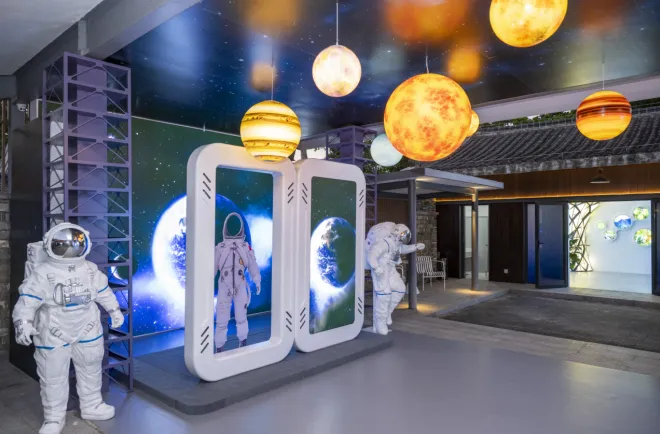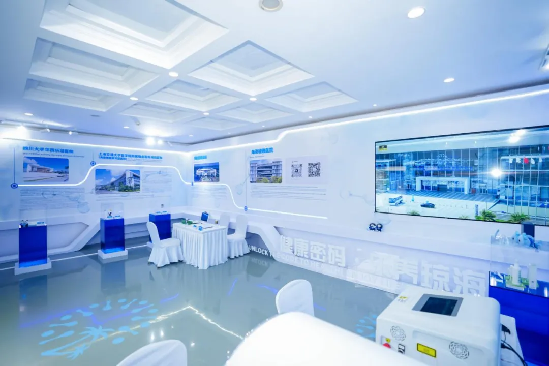 琼海城市展则聚焦“海南东部中心城市”与海南自贸港核心功能承载区生动实践和阶段性成果,以“博鳌会天下·自贸新琼海”为主题,通过科技美学创新应用,将宏观战略转化为可感可知的生活场景。以“百姓的获得感”为价值主线,打造多处科技美学体验空间。步入序厅,观众可沉浸式观看《飞跃琼海》环幕影片,或通过“数字孪生体验舱”“预见”封关运作后的美好生活;“骑行琼海”动感装置带宾客穿行万泉河畔、南洋侨乡等风情线路,“南海秘境”全息舱邀宾客化身潜水艇船长,通过掌舵潜入西北陆坡沉船遗址,身临其境感受文物发现现场;在博鳌乐城国际医疗旅游先行区,全球首创自动眼征测量仪、无创血糖仪等“黑科技”首次集中亮相,让观众近距离感受“全球创新药械如何实现中国首用”。