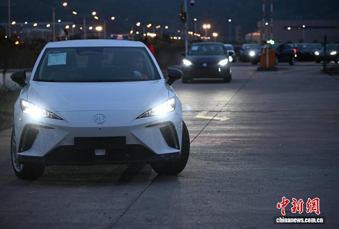 3月23日,在宁德陆港(铁路专用线)内,工作人员驾驶出口的商品车前往装载车厢。中新网记者 张斌 摄