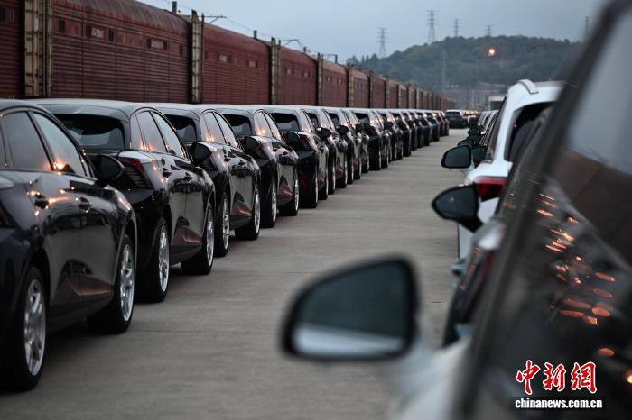 3月23日,宁德陆港(铁路专用线)内等待装载出口的商品车。中新网记者 张斌 摄