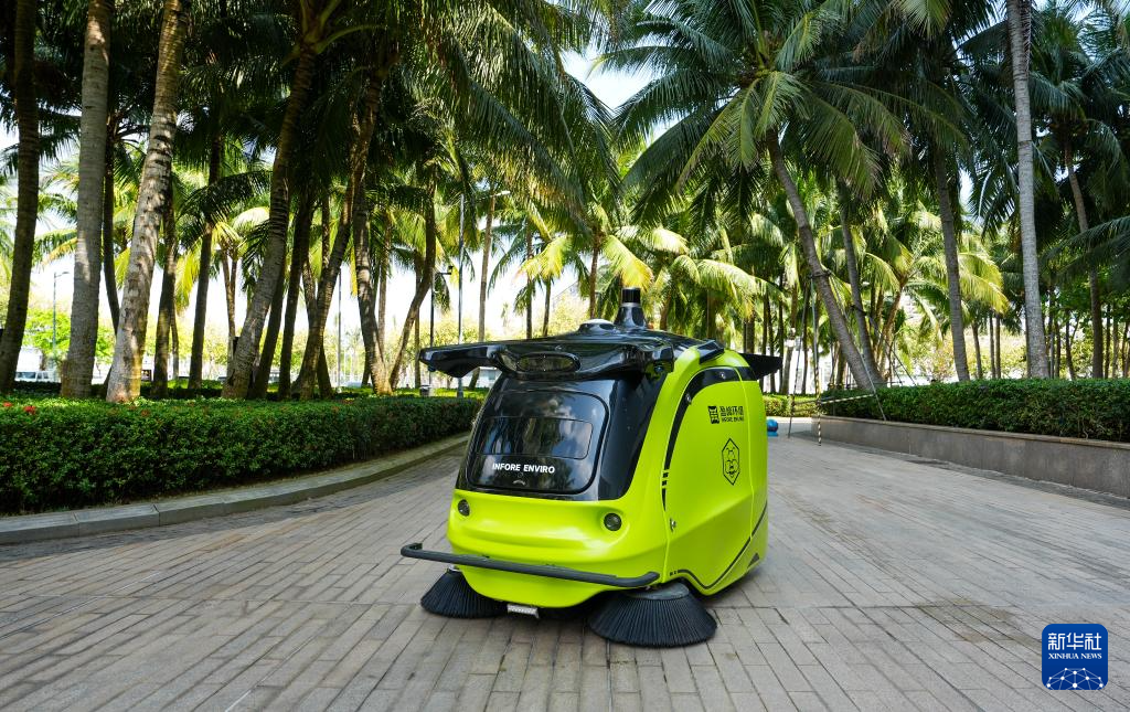 智能清扫机器人在海南省琼海市博鳌镇作业(3月25日摄)。