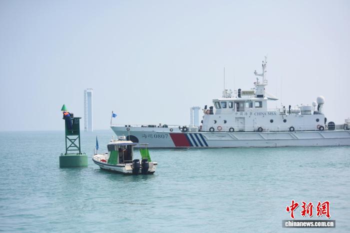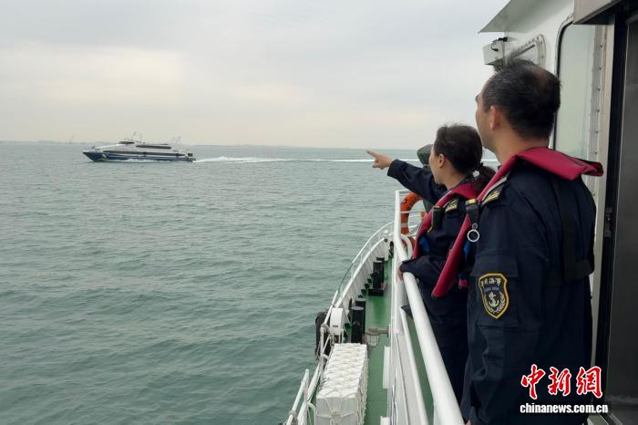 26日,厦金“小三通”航线船舶在改线后的航路通航。图为厦门海事局保障船舶按照新航路安全通航。 (厦门海事局 供图)