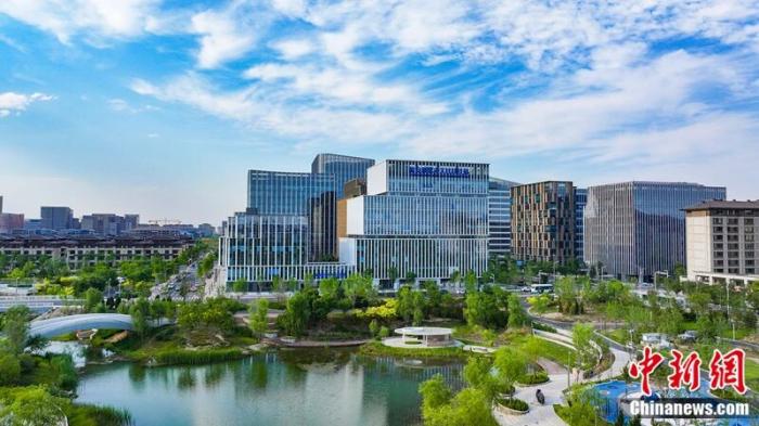 雄安商务服务中心夜景。中新社记者 韩冰 摄