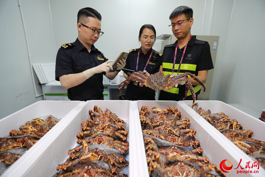 海关工作人员对货物进行查验。人民网记者 霍亚平摄