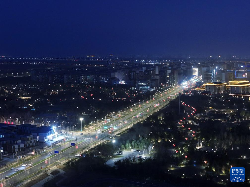 雄安新区夜景(3月27日摄,无人机照片)。新华社记者 邢广利 摄