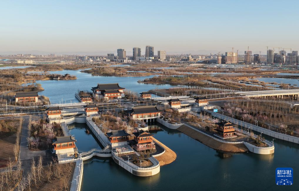 雄安新区南河枢纽景色(3月18日摄,无人机照片)。新华社记者 杨世尧 摄