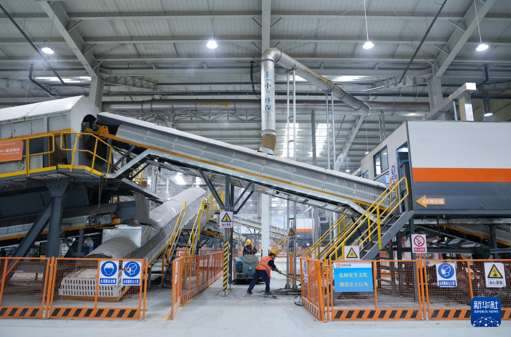 在玉龙垃圾填埋场环境修复工程筛分车间,智能筛分设备将垃圾分离为腐殖土、轻质物和无机骨料,腐殖土无害化后用于绿化,无机骨料制砖,轻质物转运焚烧发电(1月30日摄)。新华社记者 梁旭 摄