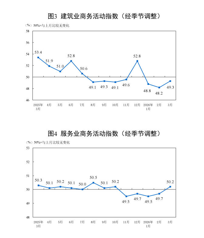 分行业看,建筑业商务活动指数为49.3%,比上月上升1.1个百分点;服务业商务活动指数为50.2%,比上月上升0.5个百分点。从服务业行业看,铁路运输、电信广播电视及卫星传输服务、货币金融服务、保险等行业商务活动指数均位于55.0%以上较高景气区间;零售、住宿、餐饮、房地产等行业商务活动指数均低于临界点。