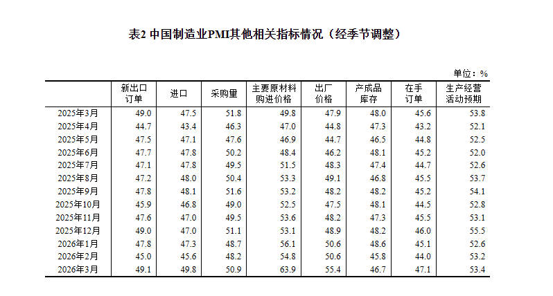 生产指数为51.4%,比上月上升1.8个百分点,表明制造业生产活动加快。