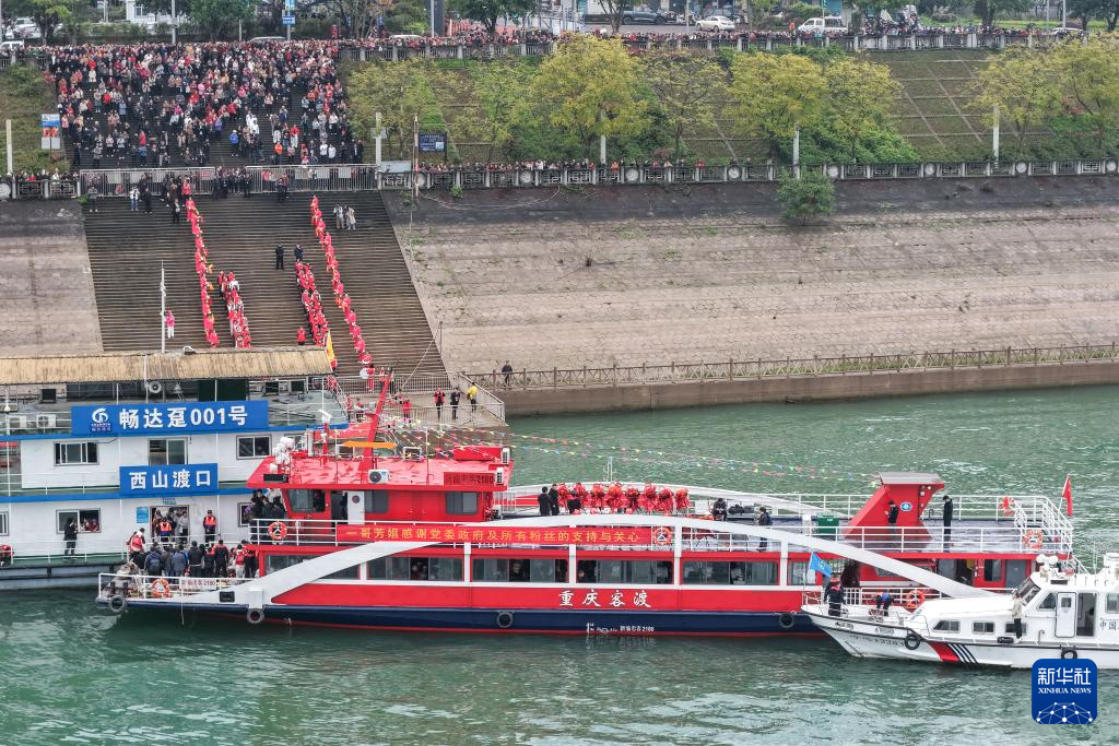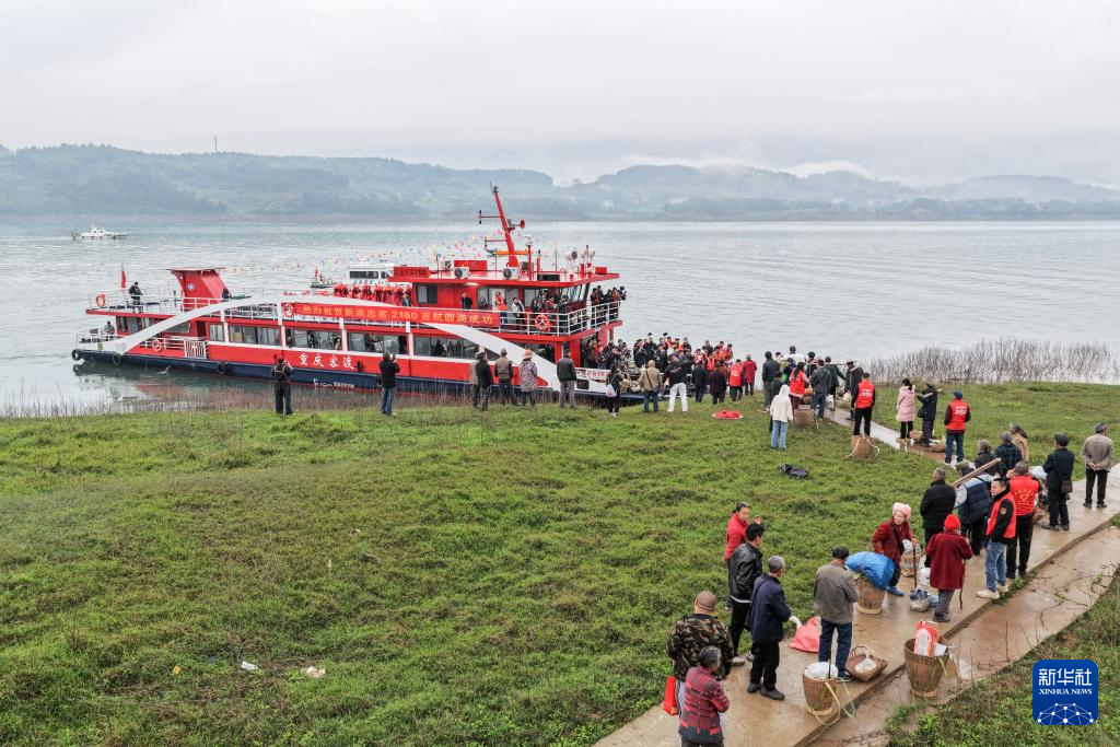 3月31日,在重庆忠县西山码头,群众热情欢迎搭乘首趟“新渝忠客2180”客轮的乘客。