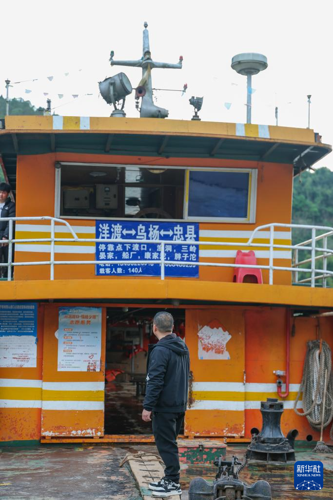 3月30日,在长江重庆忠县洋渡码头,秦大益站在“渝忠客2180”客轮上注视“新渝忠客2180”客轮。