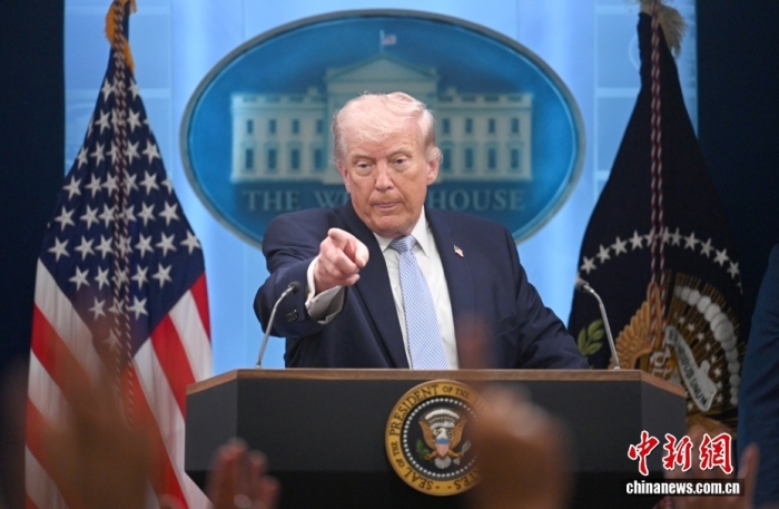 当地时间2月20日,华盛顿,美国总统特朗普在白宫就最高法院关税裁决举行记者会。中新社记者 陈孟统 摄