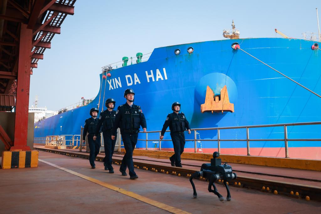 2026年4月2日,山东边检总站董家口边检站启用四足机器人开展港区巡查,以科技强警提升管控效能。(受访者供图)