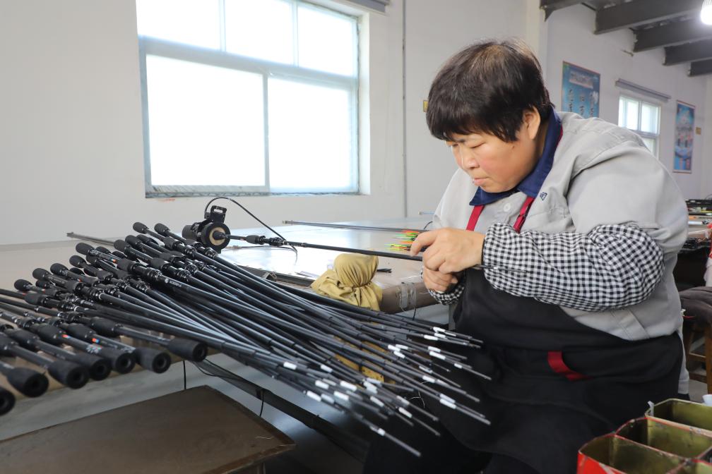 3月12日,廊坊市固安县一家体育器材工厂内工人正在缠线。(受访单位供图)