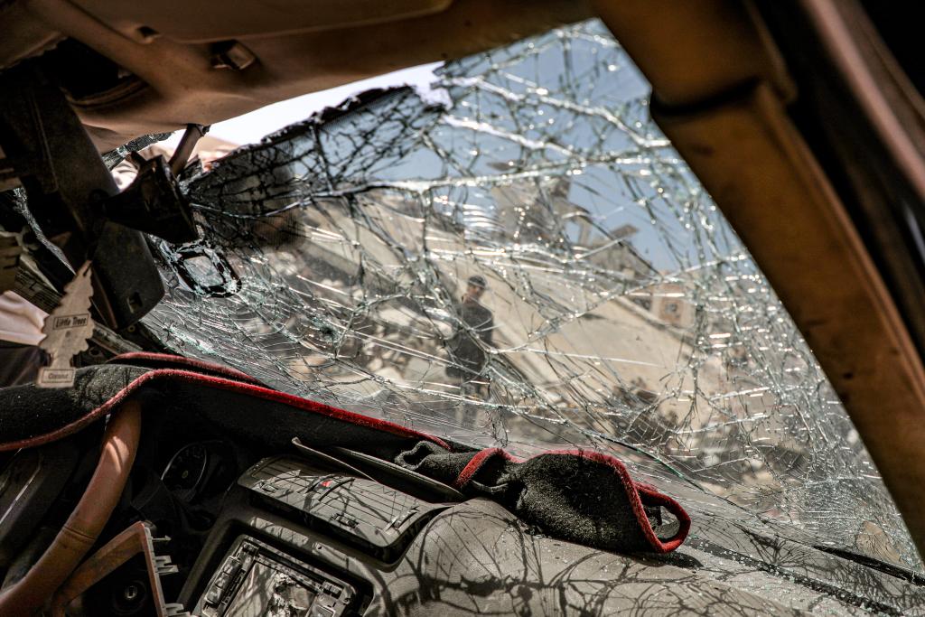 这是4月6日在加沙城拍摄的遭以军空袭后被毁的车辆。新华社发(里泽克·阿卜杜勒贾瓦德摄)