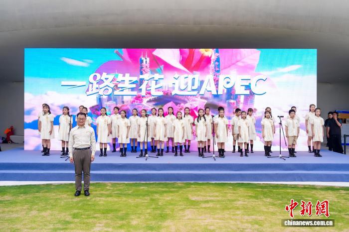 深圳市宝安区安乐小学星空之声合唱团的孩子们,以一曲《一路生花·迎APEC》的清澈童声,传递对盛会的祝福。大屏幕上,全国文明单位、文明家庭、文明校园代表纷纷发声,讲述“立足岗位、奉献盛会”的心愿。