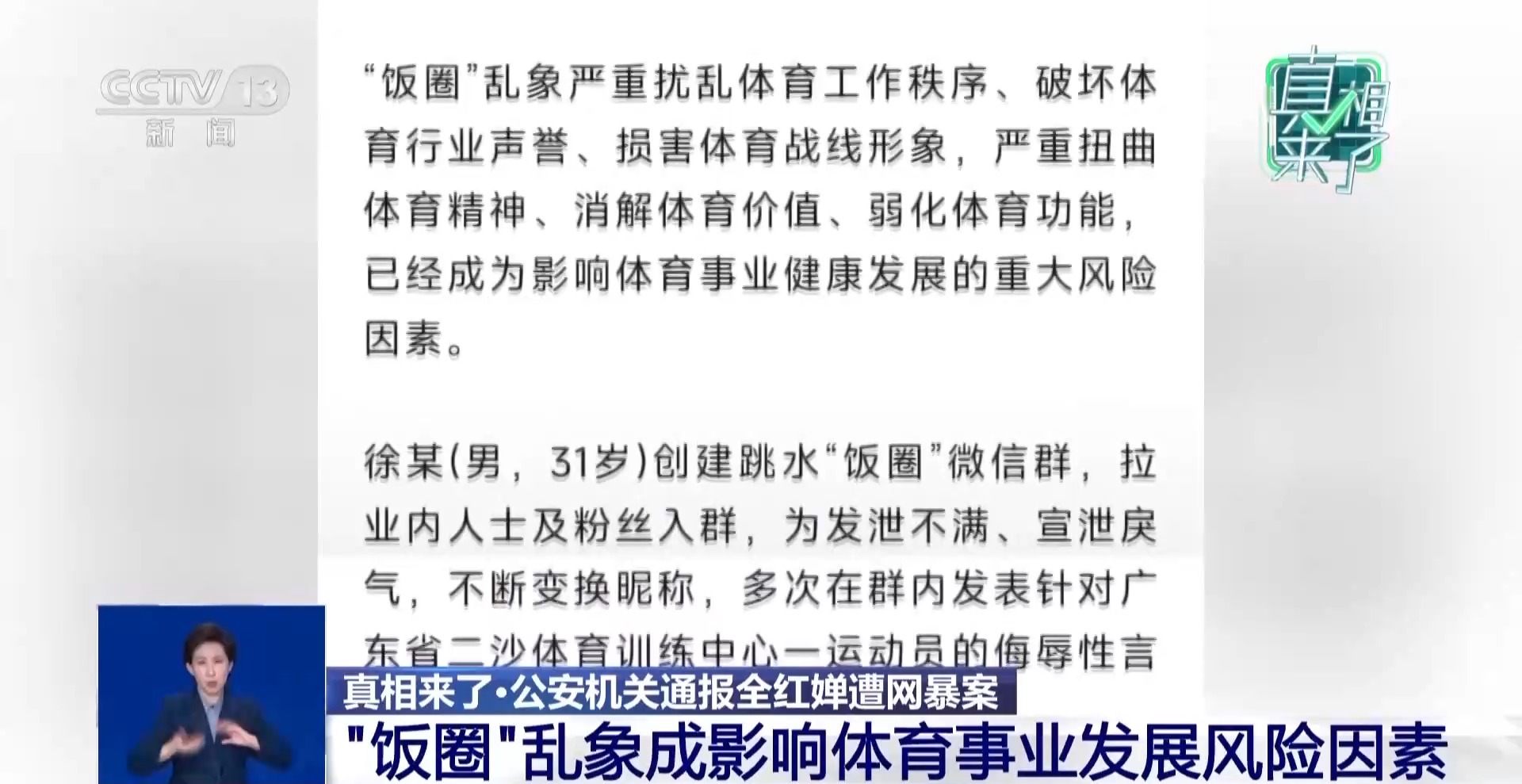 此次通报显示,徐某(男,31岁)创建跳水“饭圈”微信群,拉业内人士及粉丝入群,为发泄不满、宣泄戾气,不断变换昵称,多次在群内发表针对广东省二沙体育训练中心一运动员的侮辱性言论,恶意拉踩引战,造成恶劣影响。公安机关已对徐某依法作出行政拘留十日并处罚款的处罚,并对群内其他相关行为人员依法作出处理。