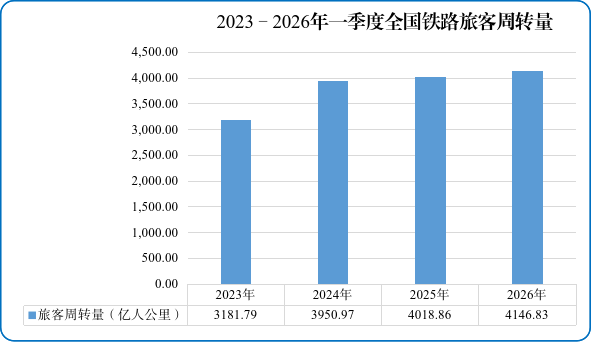 图2 2023—2026年一季度全国铁路旅客周转量