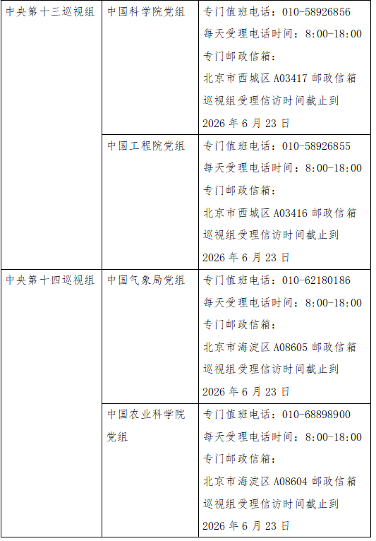 二十届中央第七轮巡视已进驻31家单位 联系方式一览