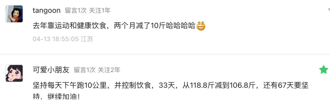 “最重要的一点要放平心态,大体重前期瘦得快,后面一定会遇到平台期,这都是正常的,不用着急焦虑。比起各种偏方,长期自律、好好坚持,才是最靠谱的减肥办法。”