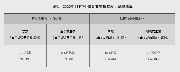 2026年3月,商业汇票承兑发生额3.5万亿元,贴现发生额2.7万亿元。2026年3月末,商业汇票承兑余额20.7万亿元,同比增加6.3%;贴现余额15.7万亿元,同比增加7.6%。