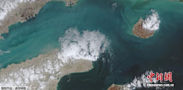 资料图:卫星图像显示当地时间4月17日霍尔木兹海峡的船只动态情况。