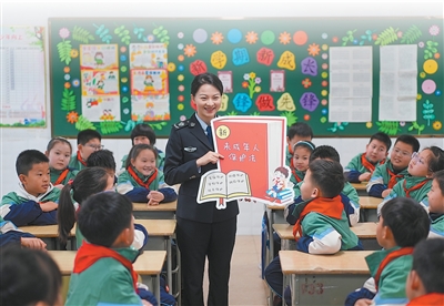安徽马鞍山市和县公安局民警向孩子们讲解安全知识。秦祖泉摄