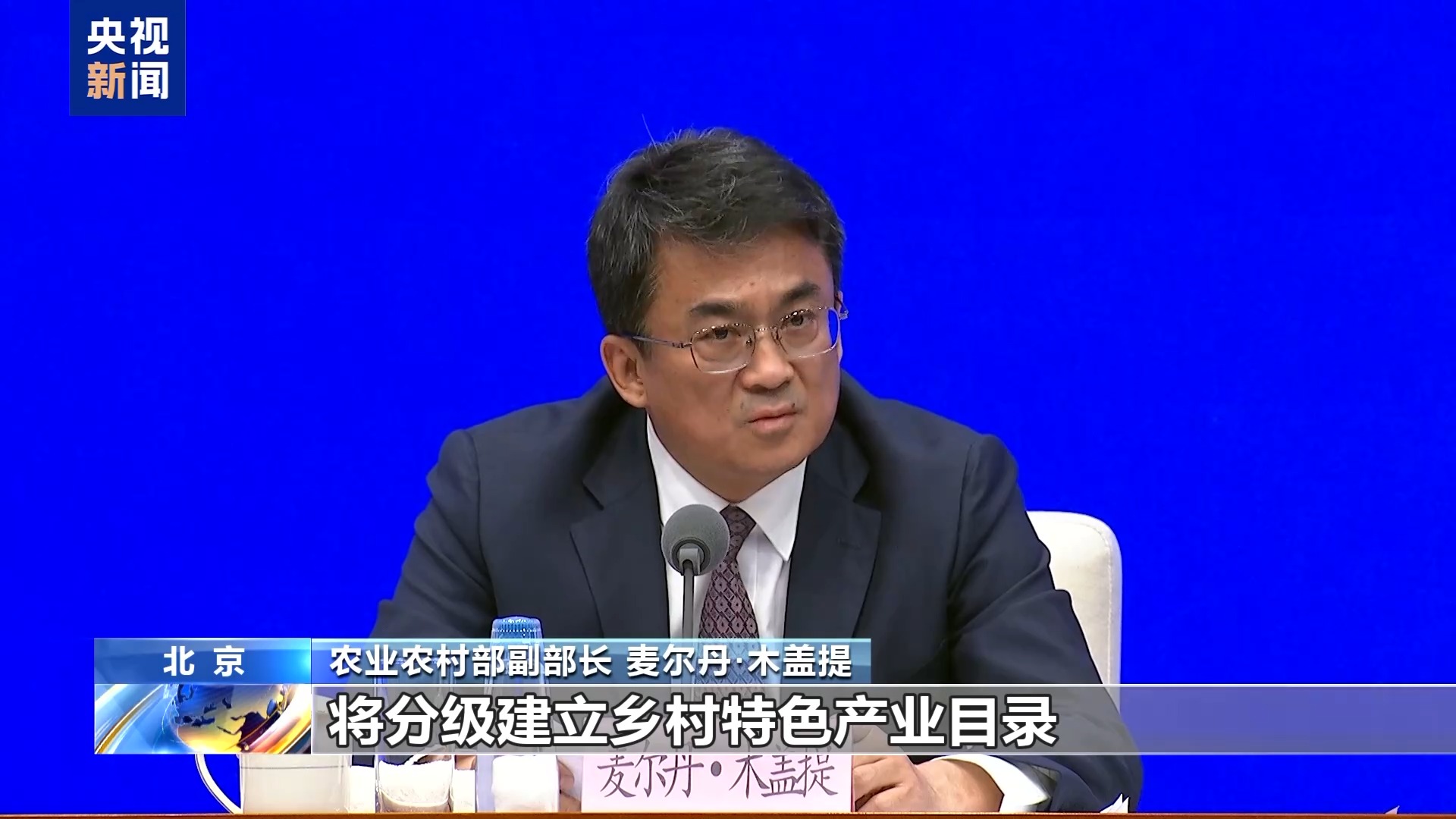 农业农村部副部长 麦尔丹·木盖提:下一步,农业农村部将分级建立乡村特色产业目录,引导特色产业差异化、集群化、品牌化发展。持续提档升级,促进农业与文化、旅游、体育、教育等产业融合。大力推进农村创业,加大资金、用地等政策支持力度,引导各类人才到乡村干事创业,带动更多农民就业增收。